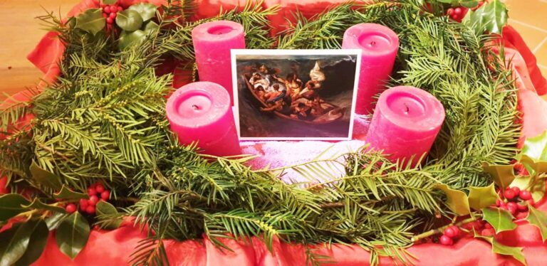 «Siamo in un tempo difficile. Potremmo dire che siamo in un tempo buio. Più che mai quest’anno abbiamo bisogno o di luce per non perdere fiducia e speranza. Per questo vi chiederei di preparare in casa la corona d’avvento che è una corona con quattro candele e un po’ di verde intorno (rami di pino o abete). Nella tradizione cristiana queste candele indicano il cammino d’avvento come cammino verso la luce. E al centro della corona potete mettere la lettera “Mi fido” con il quadro “La tempesta sedata” di Eugene Delacroix, che vi ho inviato all’inizio di questo anno pastorale».