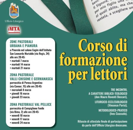 L’Ufficio Liturgico della Diocesi di Pinerolo propone un corso di formazione per lettori liturgici nelle varie zone pastorali. «Come risposta all’invito di papa Francesco ad ampliare la ministerialità della Chiesa Cattolica, in attesa del futuro corso regionale che coinvolgerà tutte le Diocesi di Piemonte e Valle d’Aosta, il vescovo Derio ha incaricato l’Ufficio Liturgico […]