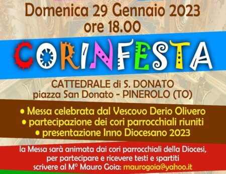 La messa col vescovo Derio dedicata a CORINFESTA sarà domenica 29 gennaio 2023 alle 18 in Cattedrale, prove il 20 e 27 gennaio. In seguito ad alcune sovrapposizioni di celebrazioni ed eventi, la Diocesi di Pinerolo ha deciso di posticipare la messa dedicata al CORINFESTA. L’appuntamento rimane in Cattedrale, dove domenica 29 gennaio 2023 il […]