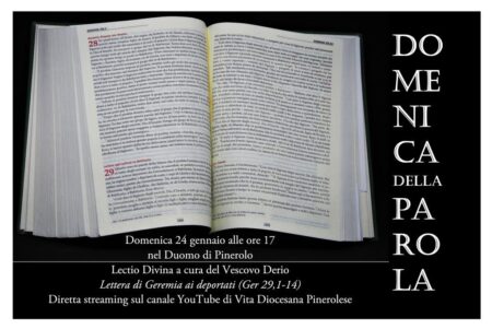 Il occasione della “Domenica della Parola” istituita da Papa Francesco nel 2019, il 24 gennaio, alle ore 17, il vescovo predicherà una Lectio divina in Cattedrale sulla “Lettera di Geremia ai deportati” (Ger 29,1-14). La lectio sarà anche trasmessa in streaming sul canale YouTube di Vita Diocesana Pinerolese.