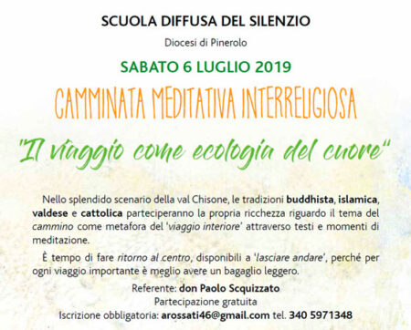 La proposta viene dalla “Scuola diffusa del silenzio” in collaborazione con la Diocesi di Pinerolo. Sabato 6 luglio si svolgerà una “Camminata meditativa interreligiosa” sul tema: il viaggio come ecologia del cuore. Nello splendido scenario della val Chisone, le tradizioni buddhista, islamica, valdese e cattolica parteciperanno la propria ricchezza riguardo il tema del cammino come […]