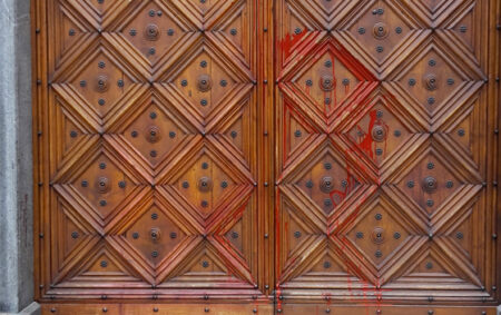 Imbrattato il portale del duomo. Il vescovo: “Un gesto inutile e fuori luogo”