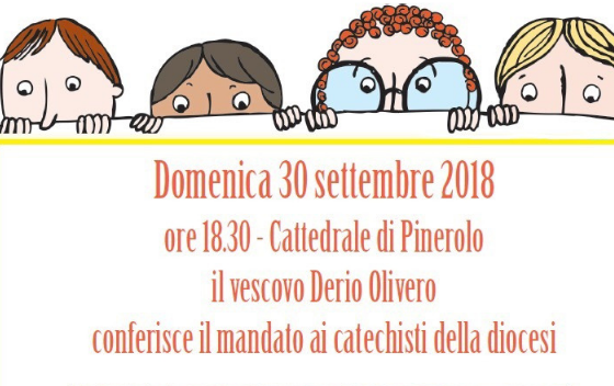 27 Settembre 2018NotizieIl vescovo conferisce il mandato ai catechisti Domenica 30 settembre, alle ore 18.30 nella cattedrale di Pinerolo, il vescovo Derio Olivero, durante la celebrazione eucaristica, conferirà il mandato ai catechisti della diocesi.