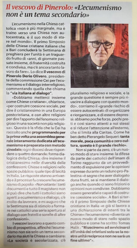 Su Credere di questa settimana il vescovo Derio sottolinea con forza che l’ecumenismo non è un tema secondario, ma una dimensione decisiva per il futuro della Chiesa e per il suo modo di stare nel mondo. L’ecumenismo, afferma, non è più marginale, ma orienta verso una Chiesa meno autoreferenziale e più capace di dialogo in una società secolarizzata e pluralista. Il cammino comune tra le Chiese cristiane, maturato in anni di relazioni, preghiera e fraternità, chiede oggi un salto di qualità, diventando stile e metodo sinodale. Solo una testimonianza condivisa, vissuta anche nelle difficoltà e nelle differenze, può generare coesione sociale e rendere il cristianesimo una presenza significativa nello spazio pubblico.