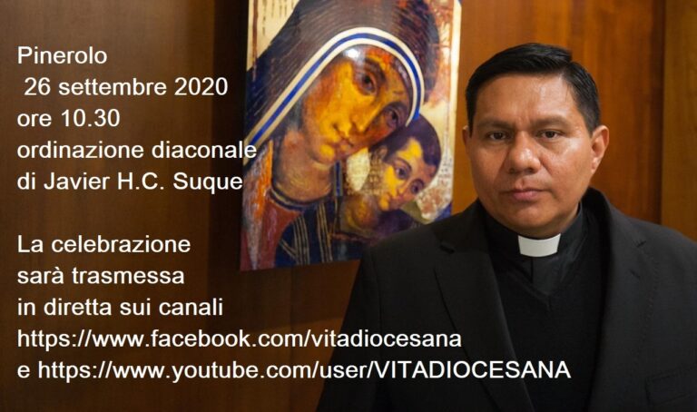 Sabato 26 settembre alle ore 10:30 in Cattedrale il vescovo di Pinerolo Derio Olivero ordinerà diacono il seminarista ecuadoregno Javier H.C. Suque formatosi nel seminario diocesano missionario “Redemptoris Mater” di Luserna.