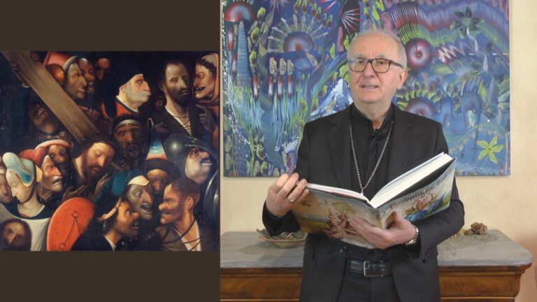6 marzo 2026 – In questo video il vescovo Derio propone una breve meditazione quaresimale a partire dal dipinto “Salita al Calvario” di Hieronymus Bosch (1498). L’opera mostra Gesù che passa accanto allo spettatore con una croce enorme e lo guarda con uno sguardo «dolce e per nulla giudicante». È un invito a ricordare che Cristo porta non solo la sua croce ma anche quella dell’umanità. Attorno compaiono personaggi che rappresentano diverse reazioni al dolore: chi lo aumenta, chi è indifferente, chi giudica, chi parla senza agire e chi invece aiuta, come il Cireneo. La domanda, conclude il vescovo, riguarda ciascuno: nella vita siamo spettatori o persone che danno una mano?