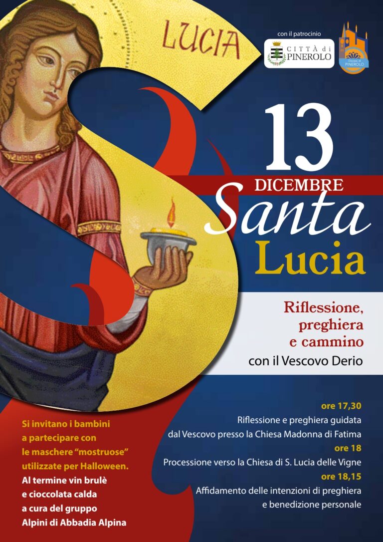 L’appuntamento è alle 17.30 nella chiesa parrocchiale Madonna di Fatima di Pinerolo (via Caprilli), dove il vescovo guiderà un momento di preghiera. Alle 18 è prevista la partenza della processione a piedi verso la cappella di Santa Lucia delle Vigne, con l’affidamento delle intenzioni di preghiera e la benedizione personale. I bambini sono invitati a partecipare con maschere “mostruose”, perché «Halloween propone di addomesticare i mostri, riducendoli a maschere inoffensive. Ma noi vogliamo trasformare questo simbolo: quelle maschere rappresentano i veri mostri che ci spaventano – la malattia, l’ingiustizia, la morte – e proclamare la fiducia in Colui che è la luce, capace di combattere davvero i mostri».